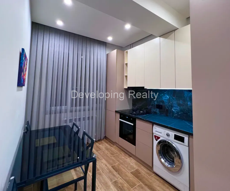 Կոմպակտ, բայց հարմարավետ խոհանոց՝ ներկառուցված տեխնիկայով (վառարան, լվացքի մեքենա և այլն)